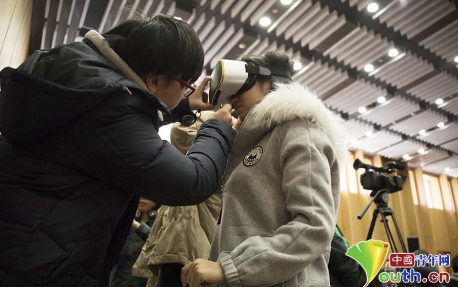 2018年3月16日,“贯彻十九大·文脉颂中华”全国青少年VR短视频大赛在京举办,参加活动的青少年现场体验VR眼镜,最时尚的技术与传统的手艺相“碰撞”,探索传承新方式。见习记者 陈馨怡摄