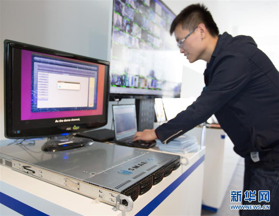 △正在演示中的高通量人工智能一体机。(图片来源:新华社)